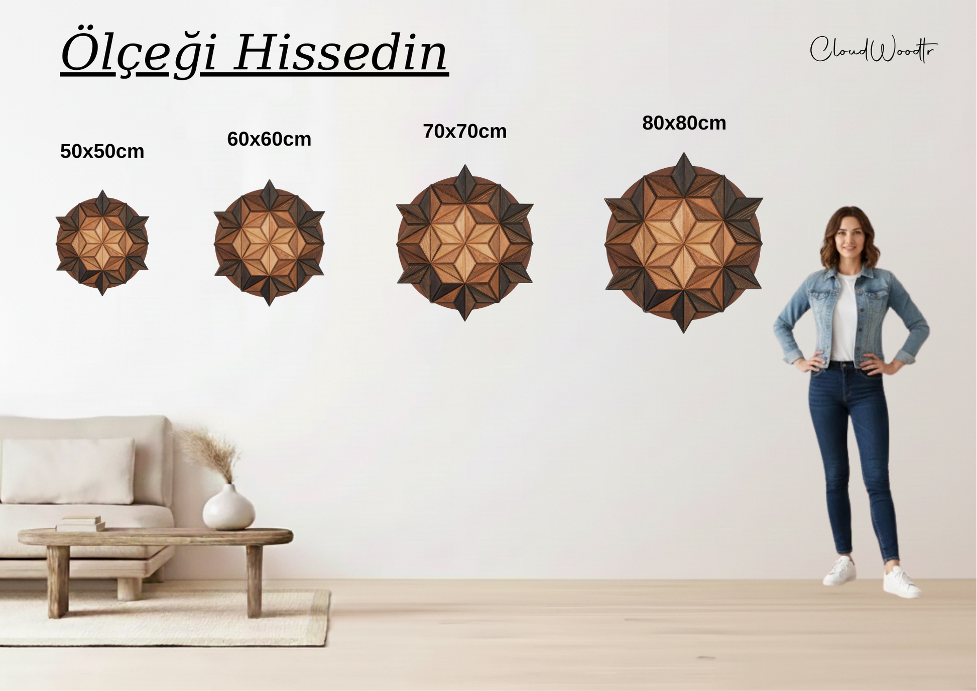 Yaşam alanlarında sadece bir dekor değil, bir karakter odağı arayanlar için tasarlanan bu parça; geleneksel motiflerin modern ve minimalist yorumunu temsil ediyor. Masif ahşabın sıcaklığını, 3 boyutlu geometrik derinlikle birleştiren bu eser, duvarınızda gün boyu değişen ışık oyunlarıyla yaşayan bir sanat objesine dönüşür.