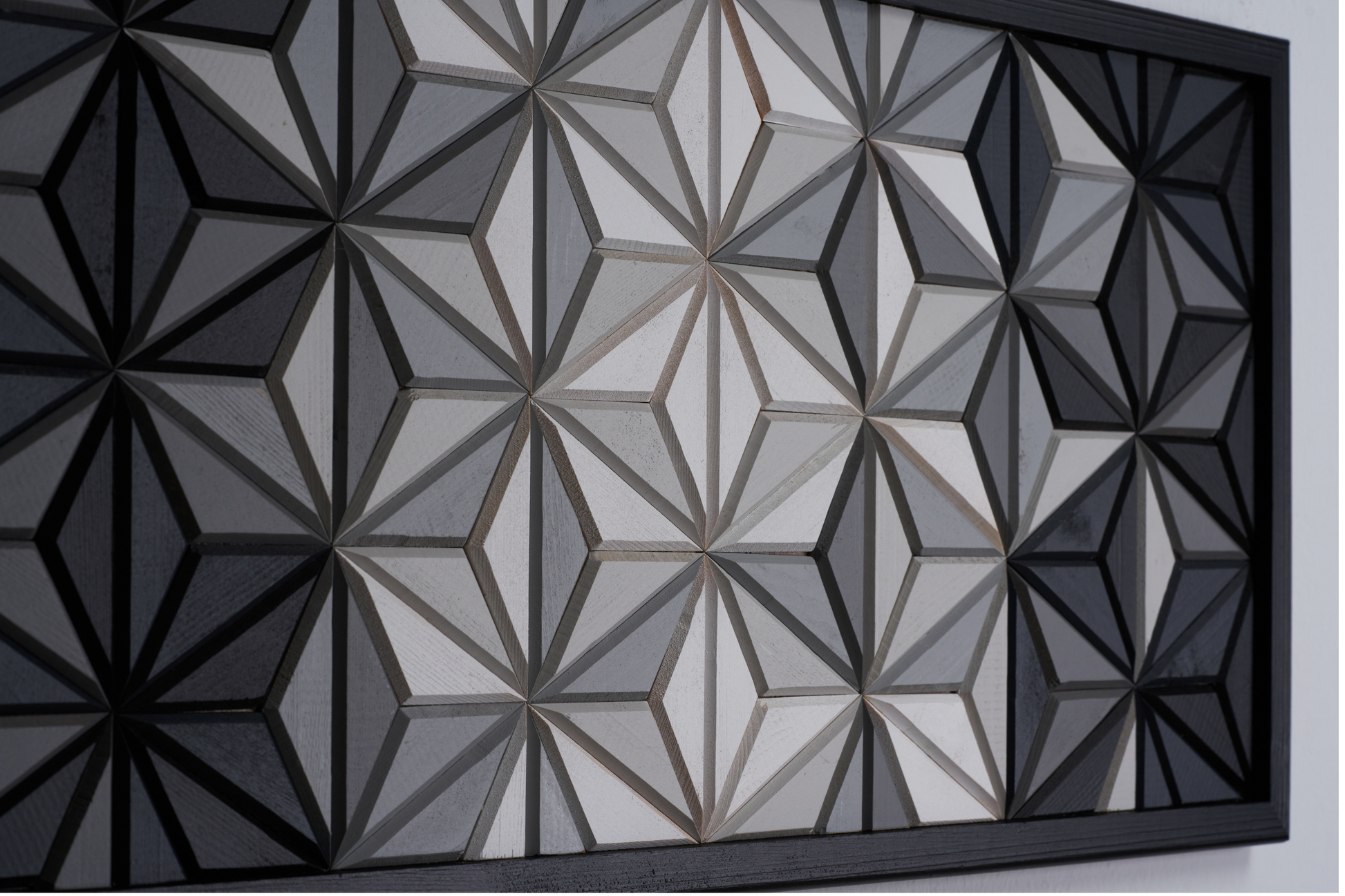 Tasarım Hikayesi: Geometrik prizmaların merkezden dışa doğru açılan renk geçişleri (gradiyan), derinlik hissini maksimize ederken modern dekorasyonun minimalizmini yansıtır. Her bir ahşap parça, dokusunu kaybetmeden özenle renklendirilmiş ve bir araya getirilmiştir.
